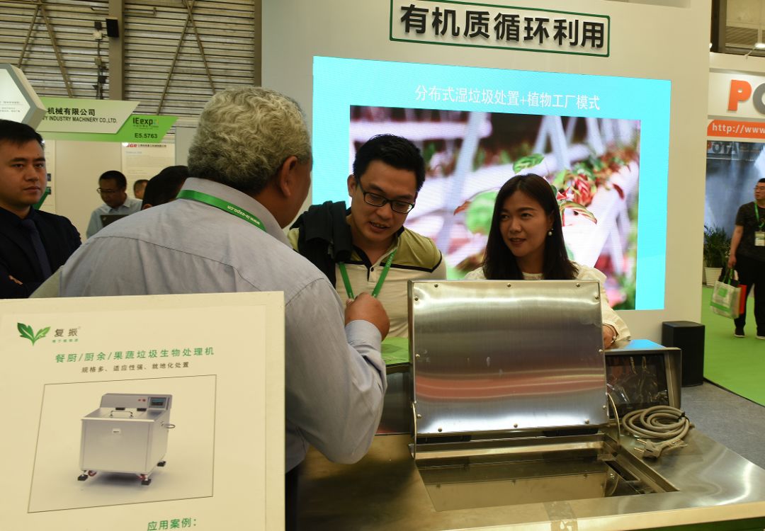 有机湿垃圾是中国城乡垃圾的主要构成部分,由于源头分类意识差、监管难度高,垃圾在收集、转运时,不仅产生有毒有害的恶臭气体,垃圾渗滤液还会污染水土生态,同时这也是有机质资源的极大浪费。本届中国环博会固废主题E5馆,复振科技FZ-BIO分布式餐厨生化处理机FZ50、FZ2000一经展出,就成功吸引到往来观众纷纷驻足了解。